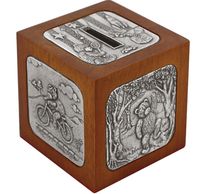 Treat a proud pair of parents to a truly exquisite christening, baptism or congratulations gift and teach a youngster that saving the pennies can be fun at the same time, with this beautiful Children's Money Box. Lovingly produced using natural wood and high quality pewter, each money box cuts a truly elegant and gorgeous figure thanks to the high standards of traditional craftsmanship applied to its manufacture. A simple cube shape, the money box measures 8cm square and features a striking pewter panel on each side. All but one of those panels is intricately and attractively decorated with images depicting a teddy bear playing all kinds of games and sports and the top one then features a handy slot for notes and coins. The final pewter panel, meanwhile, is left blank to allow you to have any message you may desire expertly engraved to add an extra personal element to your gift.