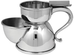 The Kensington Shaving Mug is undoubtedly one of the most attractive and best designed items within our Pewter gentleman's grooming range, thanks to its traditional styling. The 10cm tall mug has a bowl with diameter of 7.5cm and is designed to hold shaving soap at the top whilst allowing excess water to drain away when making a lather. The Kensington Shaving Mug also includes a rest for your shaving brush and has a mirror-like finish which is ideal for the addition of your own personal choice of engraving. Lovingly crafted from the highest quality, lead free pewter, the mug will not tarnish over time and is supplied beautifully packaged in a stylish cream and black presentation box.